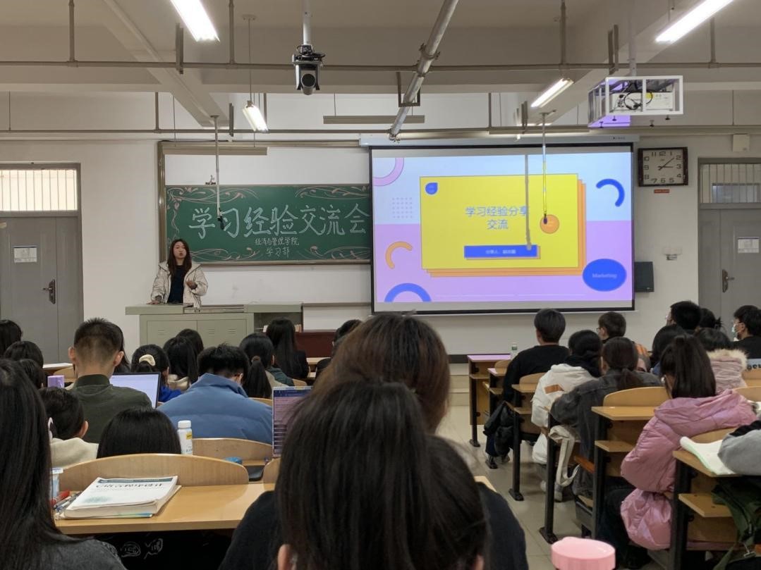 首先,由主持人宣读本次交流会的目的并介绍了四位同学的基本信息。随后由胡悦同学第一个上台分享自己的学习经验,她主要分享了大学课程的学习方法和考试准备方法,向大家列举了一些值得参与的重要比赛。第二位分享的优秀学生代表是刘明月,她提出作为大一新生尽早确定目标十分必要,要在步入大学的关键时刻做好本科甚至更长远阶段的目标规划并就如何进行目标规划进行了自己的经验分享。第三位宣讲的同学是赵志颖,她提醒同学们不要因为疫情而影响自己美好的大学生活,仍然要满怀期待,对大学未来充满憧憬。最后进行分享的是韩世宏同学,他具体分享了保研以及考研的相关知识,解答了同学们相关的疑问。