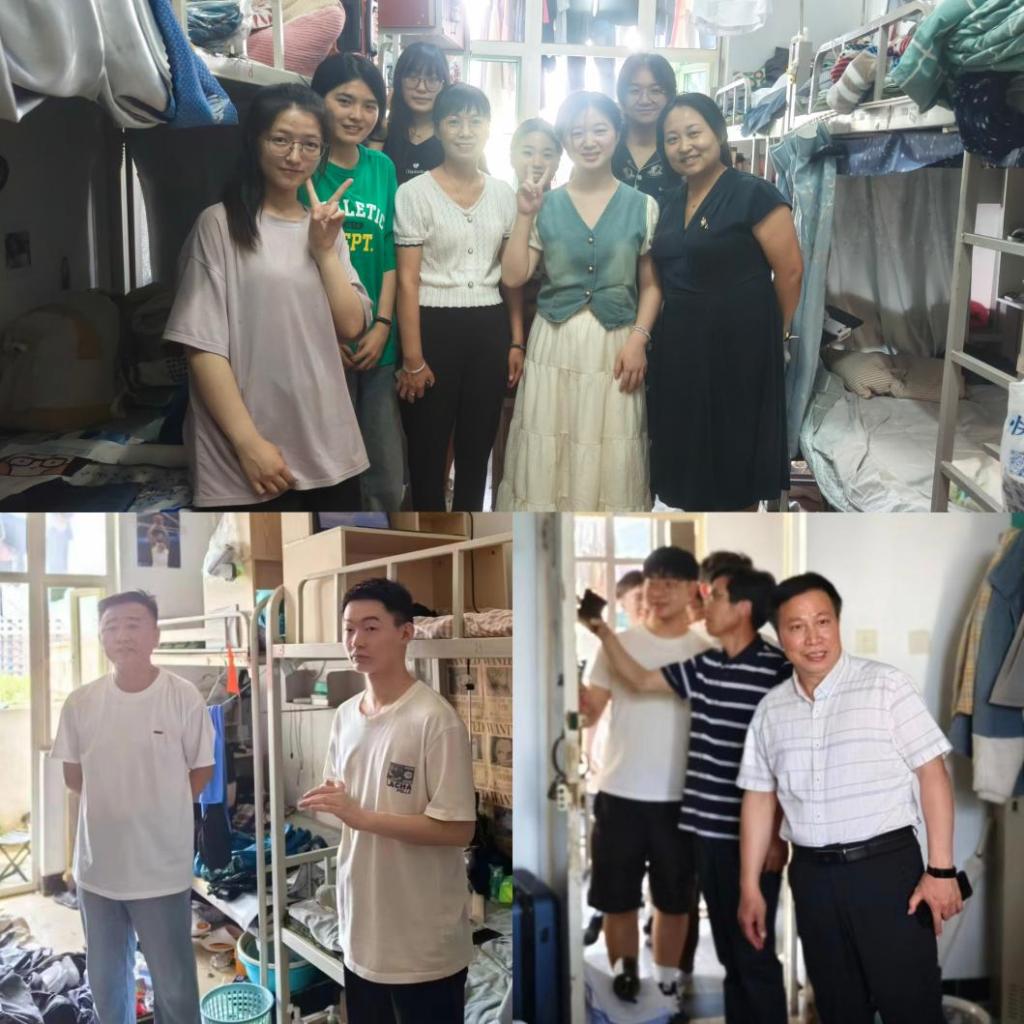 “签了什么工作?”“有没有什么困难?”“考研考到哪所学校啦?”“未来有什么打算?”“对学校还有什么建议?”每到一间宿舍,院领导都与毕业生亲切交谈,详细了解毕业生目前的就业、升学、未来的发展规划和离校前准备等情况,耐心询问毕业生对学校教育教学、管理服务等方面的意见建议,以及他们生活、就业中存在的困难,对已经成功升学和签约的学生表示祝贺,对尚未就业的学生予以鼓励。